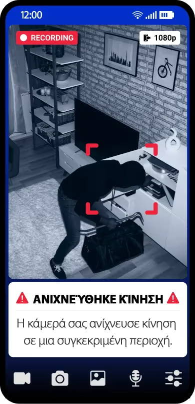 Με την πρωτοποριακή τεχνολογία ανίχνευσης κίνησης, είναι σαν να έχετε ένα επιπλέον ζευγάρι μάτια που παρακολουθούν την ιδιοκτησία σας 24 ώρες το 24ωρο, 7 ημέρες την εβδομάδα. Όταν ανιχνεύεται κίνηση, ειδοποιείστε αμέσως μέσω της εφαρμογής για κινητά, ώστε να μπορείτε να αναλάβετε άμεση δράση, ακόμα και αν βρίσκεστε χιλιόμετρα μακριά. Είτε πρόκειται για πιθανή διάρρηξη, ύποπτο επισκέπτη ή απλώς έναν φιλικό γείτονα που περνάει από το σπίτι, θα είστε πάντα ενήμεροι. Προλάβετε τους εισβολείς και εξασφαλίστε την ασφάλεια του σπιτιού σας με την προληπτική κάμερα ασφαλείας μας. Ηρεμία, όπου κι αν βρίσκεστε. Διαθέσιμο στο App Store και στο Google Play.